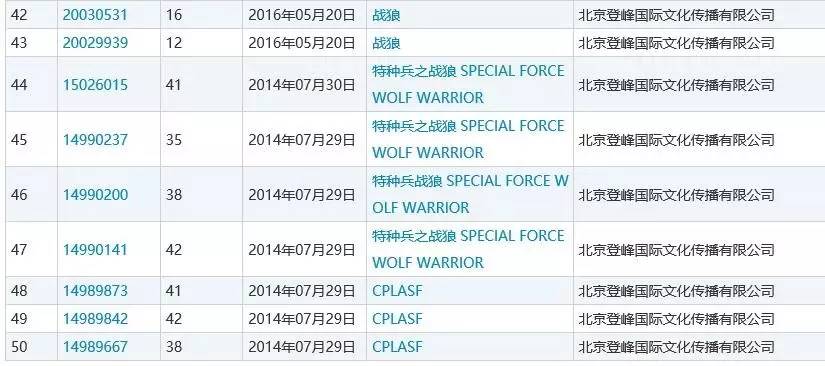 现在大家明白为什么吴京面对侵权的起诉这么淡定了吧,人家根本就是一个优秀的创业者,早在2014年,就已经开始布局“战狼”这个品牌的知识产权保护了。